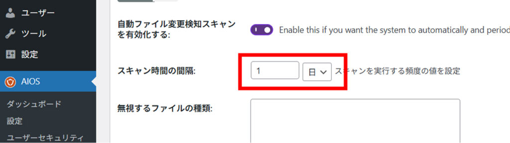 スキャンの間隔は「時間」「日」「週」などから自由に選択できますが、一般的なWebサイトであれば 「1日1回」 に設定しておくのがおすすめです。