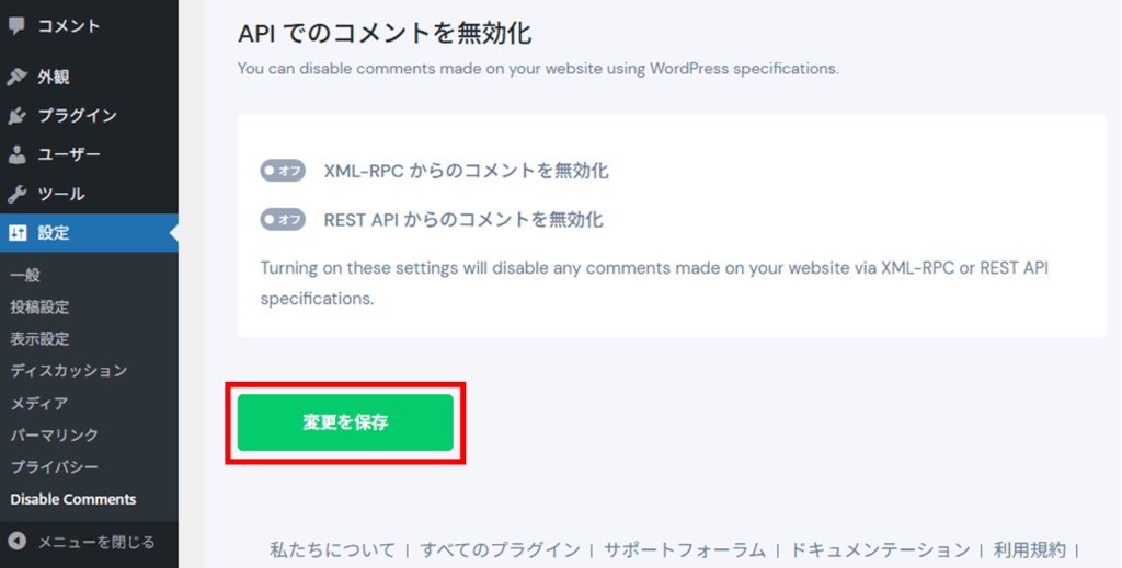 この設定を行うと、サイトのコメント機能が完全に無効化されます。